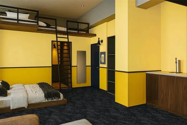 全3部屋は、定番ビールのイメージに沿って異なるコンセプトでデザインされ、グループ&ファミリールームは4〜5人がビール片手に楽しめるようロフトベッド構造になっています。