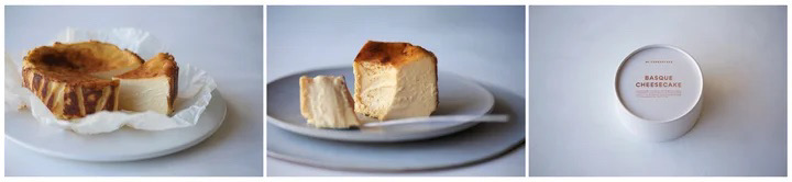 Mr. CHEESECAKEがつくる、バスクチーズケーキ。焦がしバター、バニラ、黒糖など旨味が特長の素材を組み合わせることで、高温で焼き上げる際に生まれる香ばしい香りがケーキ全体から感じられます。そこへクリームチーズ、ヨーグルト、練乳を加え、ミルキーな味わいを足し、より滑らかな口溶けに仕上げるためにヨーグルトパウダーを加えました。いくつもの素材を組み合わせた重層的な味わい、そして外側の濃密な食感と内側のとろけるような食感のコントラストをお楽しみください。