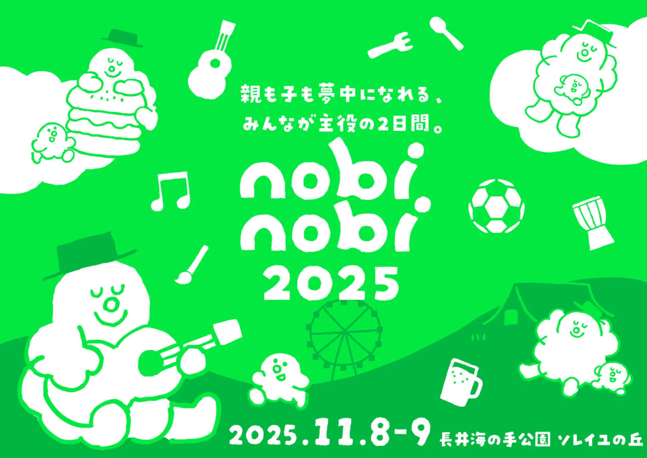 長井海の手公園 ソレイユの丘にて、2025年11月8日(土)・9日(日)の2日間、“親も子も夢中になれる、みんなが主役の2日間。”をテーマにしたファミリー向けフェスティバル「nobinobi 2025」が初開催されます!