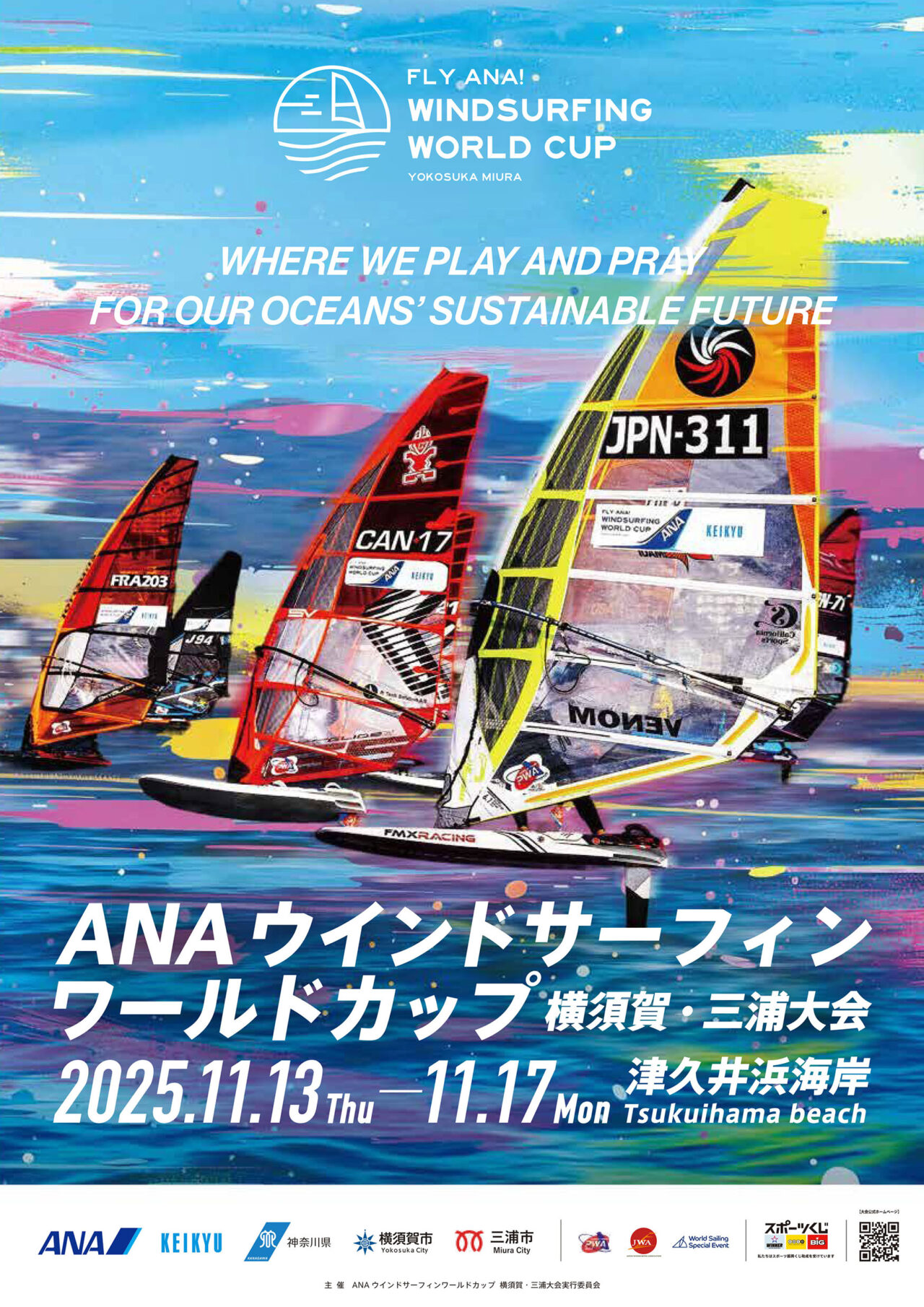 2025年11月13日(木)から17日(月)までの5日間、津久井浜海岸にて、「ANAウインドサーフィンワールドカップ横須賀・三浦大会」が開催されます!