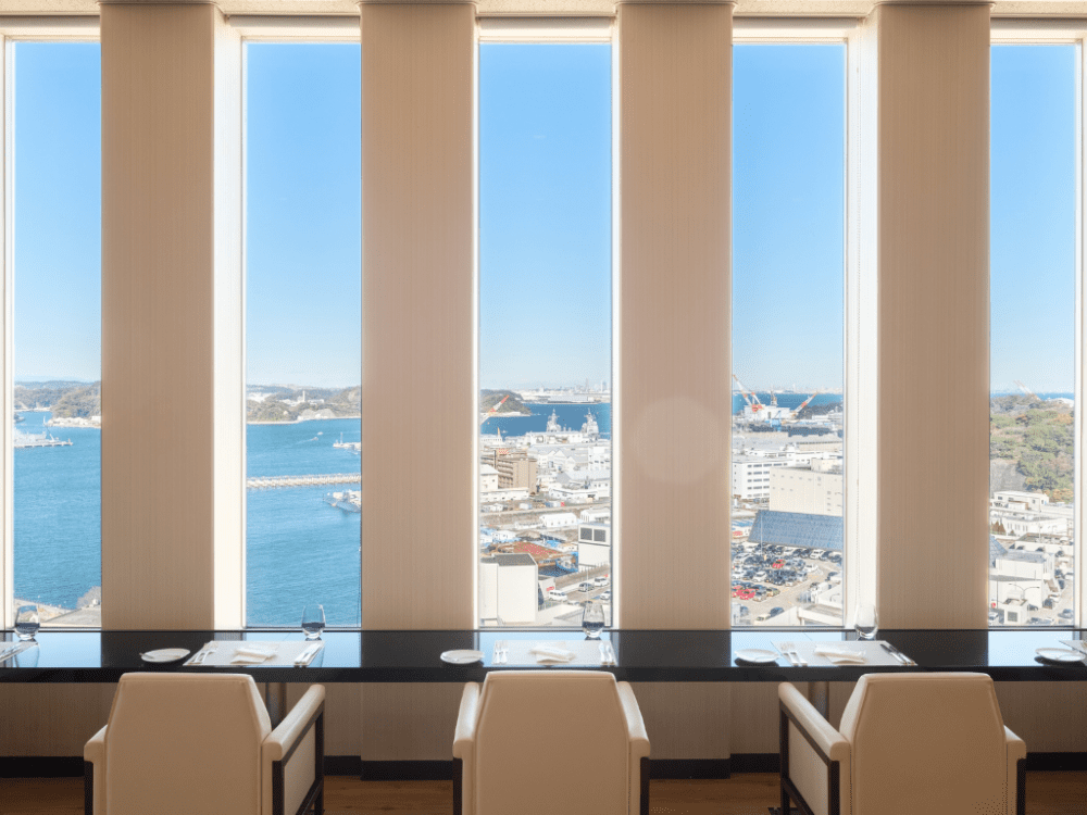 横須賀ベイビューを望む高層階レストランで、