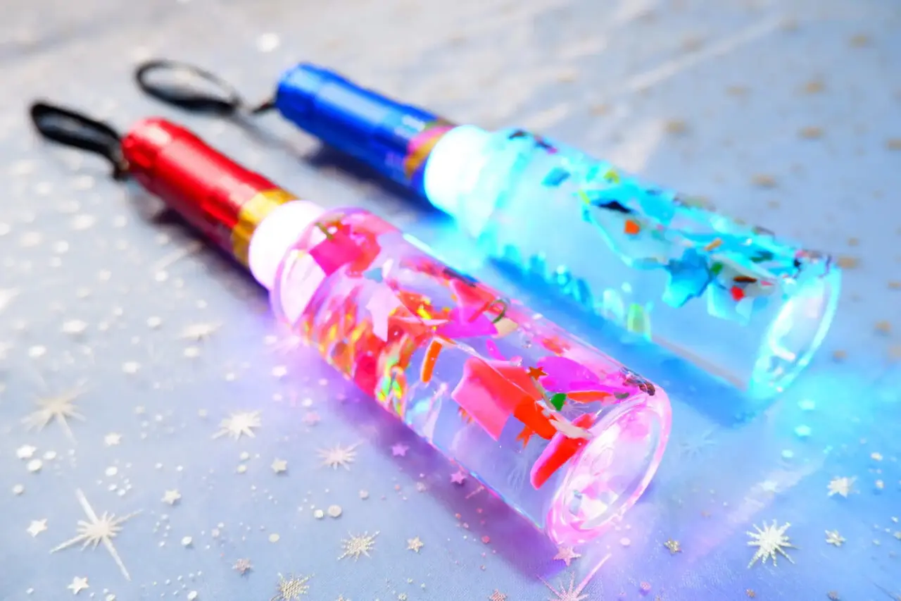 蛍光ビーズやペットボトルのキャップを再利用した材料で作るエコなペンライトのワークショップです。(参加材料費:お一人様500円)