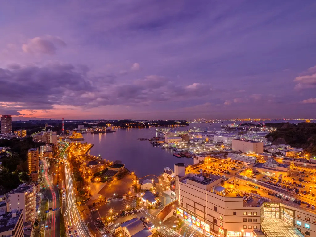 冬の期間限定イルミネーションで輝く街並みや米海軍・海上自衛隊の軍港やヴェルニー公園など、横須賀ならではの夜景を楽しみながら、ロゼのスパークリングワインで乾杯。