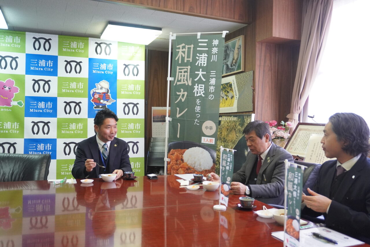 試食した出口市長らも、「三浦大根のアクセントが効いてますね!美味しい!」とコメント。