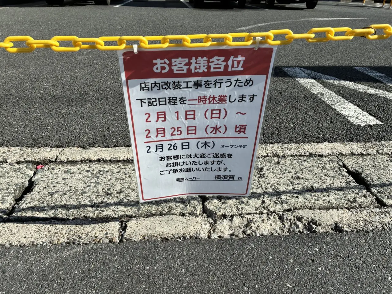 【横須賀市】平成町にある業務スーパーが店舗改装のため臨時休業中です。オープン日はいつ?