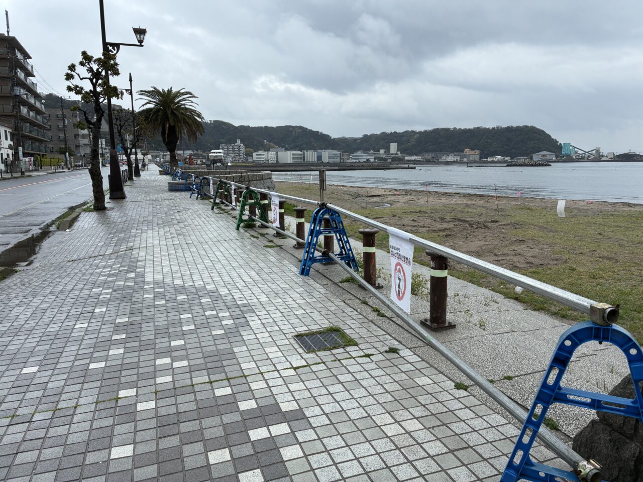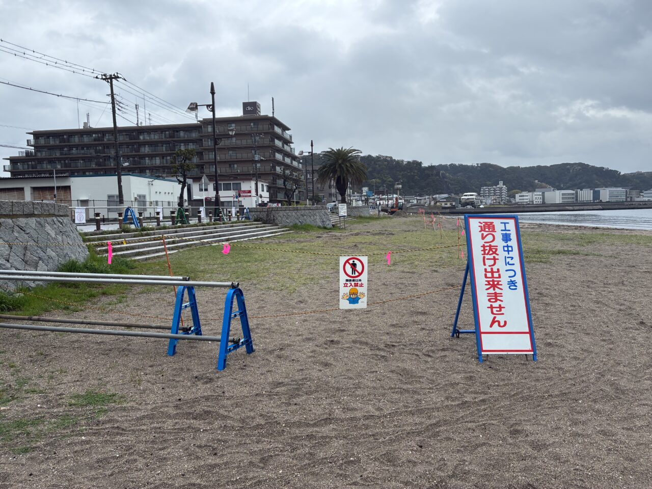 【横須賀市】久里浜海岸の一部が嵩上げ工事中の為、使用できなくなっています。